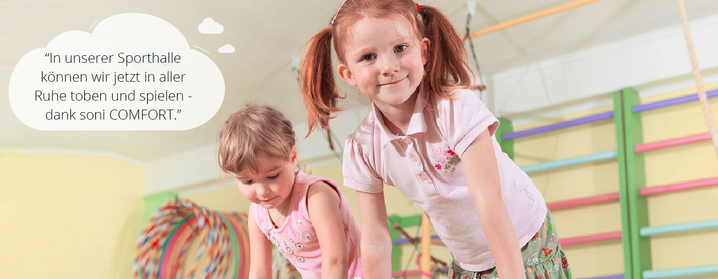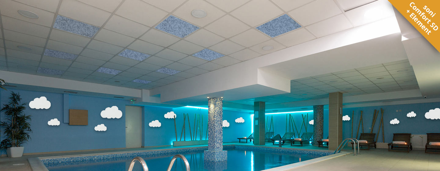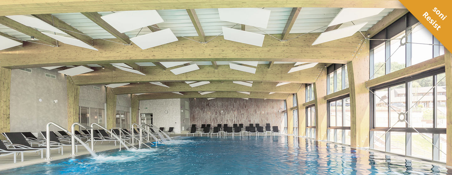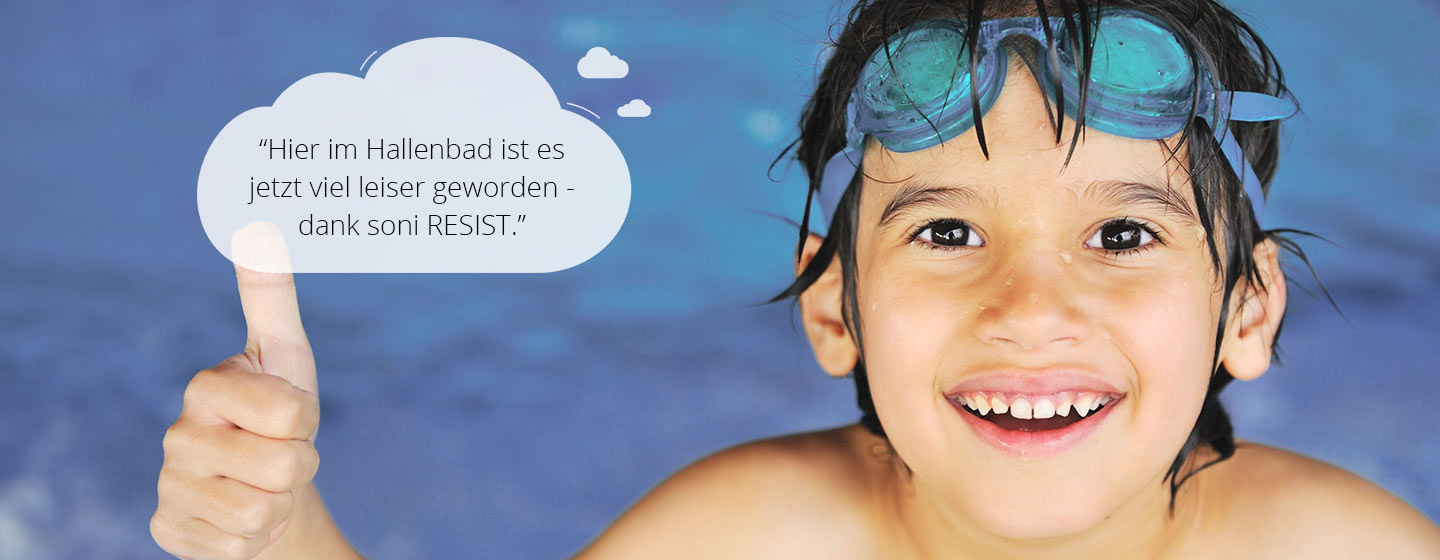 Abhilfe verschaffen wir mit unseren akustisch wirksamen Schallschutzprodukten. Speziell für Sport- und Schwimmhallen haben wir mechanisch stabile Produkte, die u. a. auch eine Ballwurfsicherheitsprüfung bestehen - soni COMFORT - oder für Nassbereiche geeignet sind, wie z. B. soni RESIST. Angebracht an der Decke und im Bereich der Wände schlucken sie den Schall wirksam und sorgen so für eine ideale Trainings- und Wettkampfumgebung. Dadurch wird der Aufenthalt in Sport- oder Schwimmhallen zum angenehmen Freizeiterlebnis.