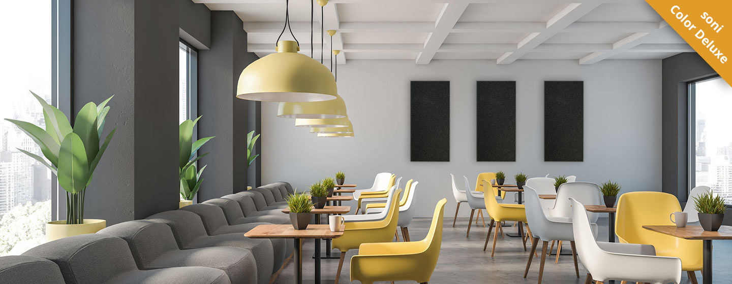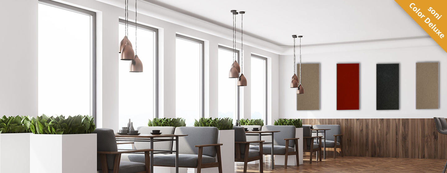 Spesso all’interno di ristoranti, bar, caffetterie o mense si genera un’acustica ambientale sgradevole e riverberante causata dallo spostamento di stoviglie, musica a volume alto e da tante persone che parlano contemporaneamente. L’architettura moderna, oltre ai pavimenti riverberanti e all’assenza di divisori, non fanno che amplificare questo effetto.