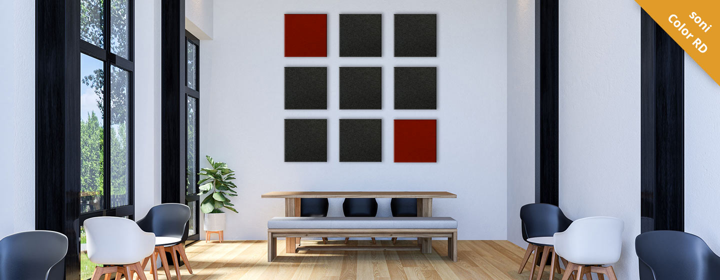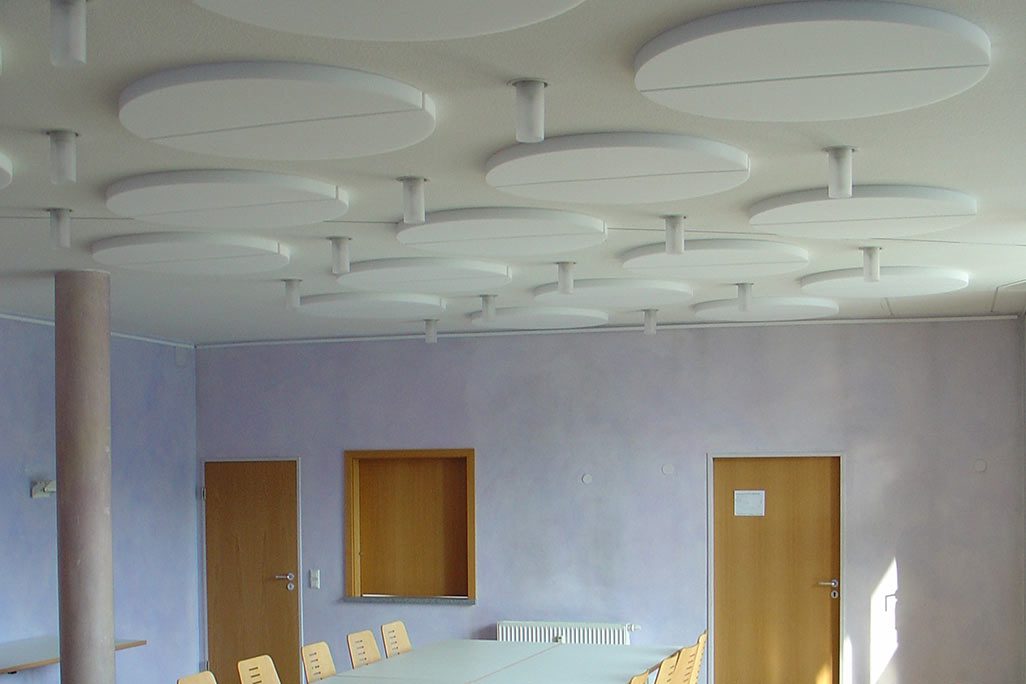 Per migliorare l’acustica ambientale, consigliamo di rivestire soffitto e pareti con materiali antirumore dalle proprietà fonoassorbenti. I nostri elementi acustici decorativi e dal design ricercato valorizzeranno i vostri ambienti non solo da un punto di vista acustico, ma anche puramente estetico. Come altre misure di supporto è possibile anche applicare tra le scrivanie e le sedute degli elementi fonoassorbenti per ridurre il rumore.