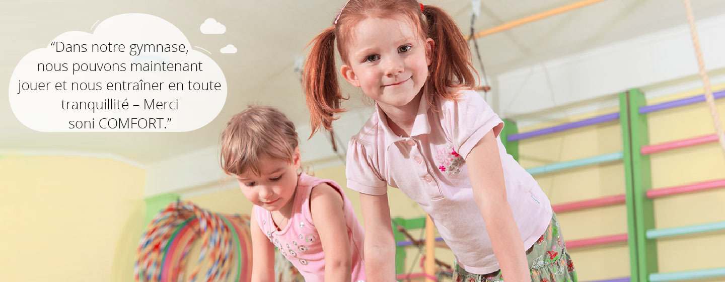 L'utilisation de panneaux de plafond à absorption acoustique constitue une mesure efficace pour réduire le temps de réverbération. Ces panneaux de plafond sont composés de matériaux absorbant le son et l'empêchant ainsi de se réfléchir librement dans la pièce. Notre produit soni COMFORT se prête parfaitement à une utilisation dans les gymnases et les salles de sport. En tant qu'élément de plafond, il satisfait au test de résistance aux lancers de balles selon la norme