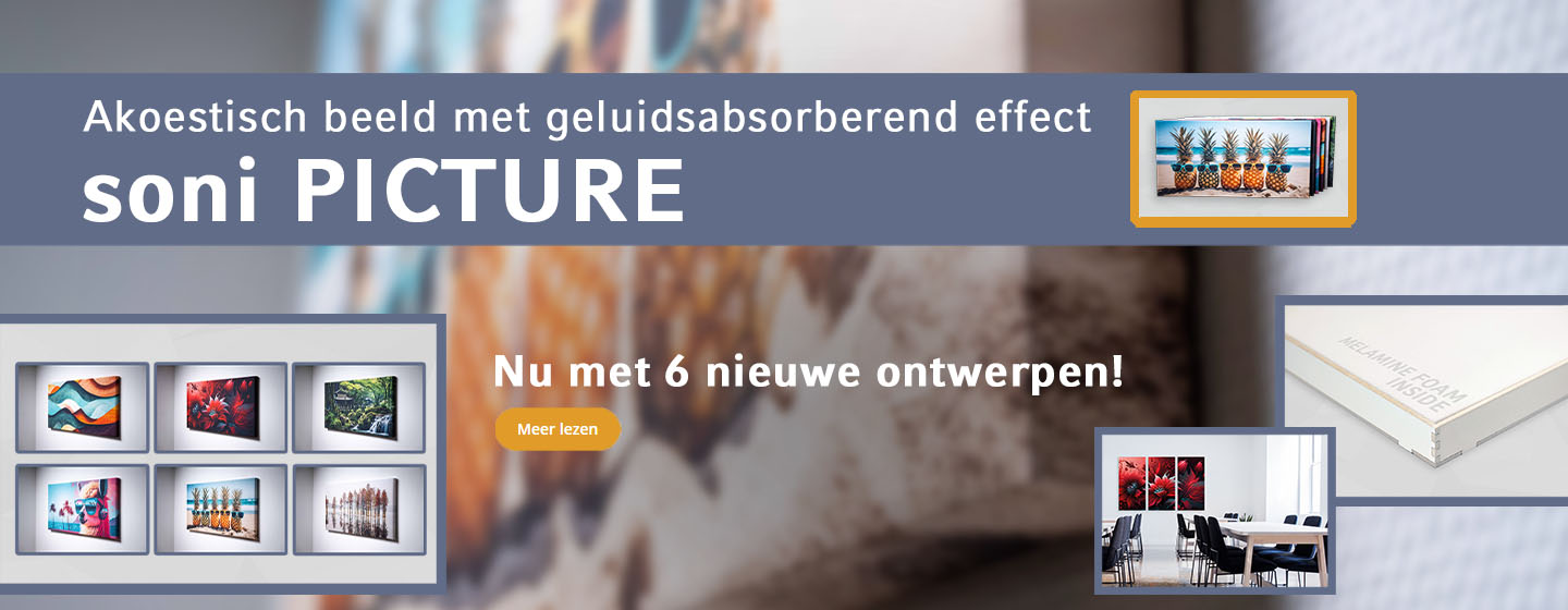 Onze akoestische panelen zijn geluidsabsorbers van een heel bijzondere soort, want met soni PICTURE kunnen ruimten decoratief worden vormgegeven en tegelijkertijd akoestisch worden geoptimaliseerd.